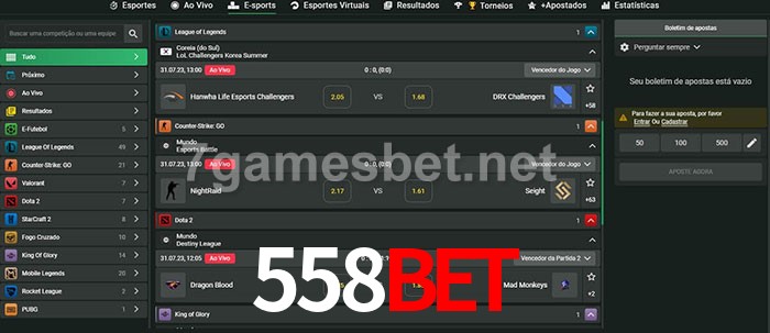 A aposta 558Bet oferece aos jogadores a experiência mais conveniente de apostas em eSports!